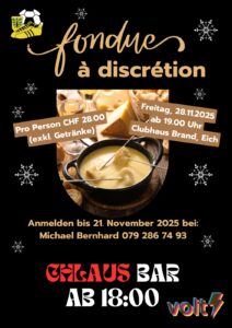 Kurz vor Weihnachten feiert der SC Eich mit allen Freunden den Christmas Apéro auf dem Brand. Geschenke tauschen erlaubt.